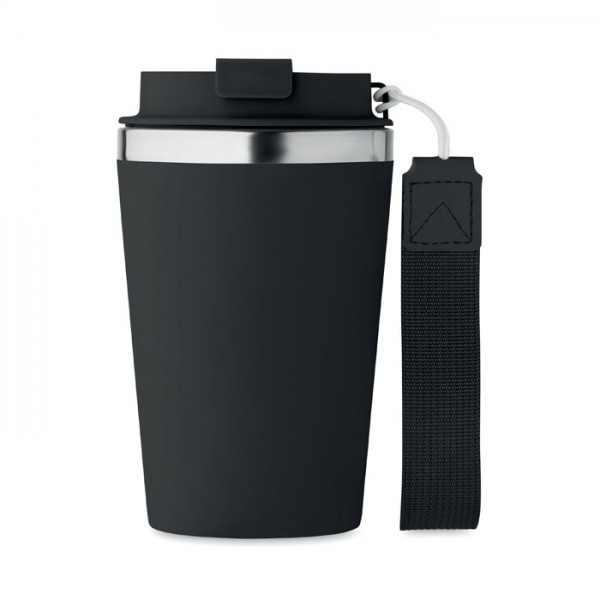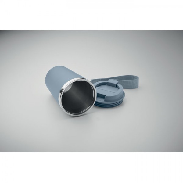 Dvigubos sienelės kelionis puodelis "Topaz" iš perdirbto nerūdijančio plieno. Su patogia rankenėle, pagaminta iš tvarios, perdirbtos medžiagos.Talpa: 350 ml.